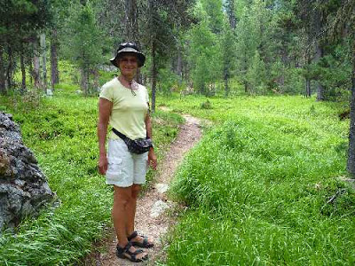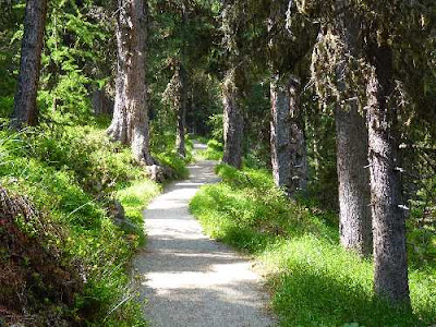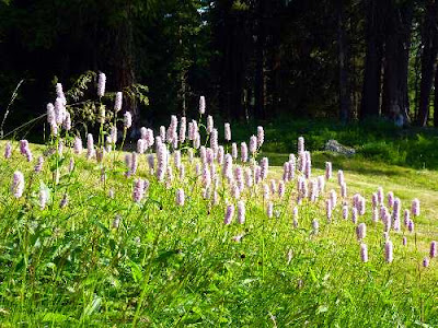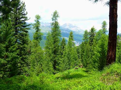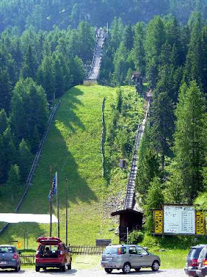 Anschliessend bereiten wir uns für unsere heutige kleine Bergwanderung zum "Hahnensee" (Lej dals Chöds) vor. Dieser Bergsee, dessen Entstehung auf die letzte grosse Eiszeit zurückgeht, liegt auf 2153 m.ü.M., ziemlich genau oberhalb unseres Campingplatzes. Für den Aufstieg wählen wir den Weg, der gleich hinter der Olympiaschanze südöstlich von uns beginnt.