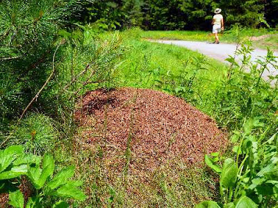 Wir sind bereits im Tal unten angelangt und bestaunen die zahlreichen riesigen Ameisenhaufen am Wegesrand.
